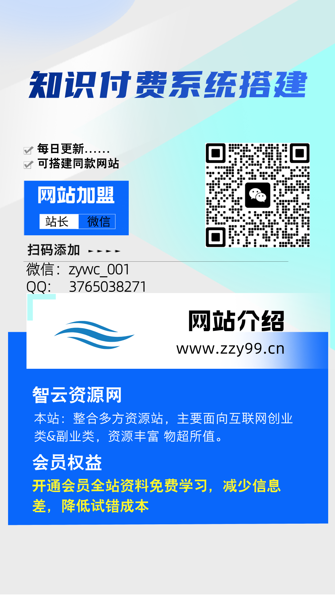加盟梦启网创,加盟搭建同款知识付费资源网站,实现长期稳定被动收入~